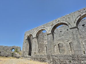 Voskopoja, perché dans les montagnes du sud-est, est un village abandonné devenu musée à ciel ouvert. Autrefois prospère, il recèle aujourd’hui des églises orthodoxes du XVIIIe siècle aux fresques étonnamment bien conservées. Flâner dans ses ruelles et parler avec les habitants, c’est plonger dans l’histoire et les traditions albanaises, loin des circuits touristiques classiques.